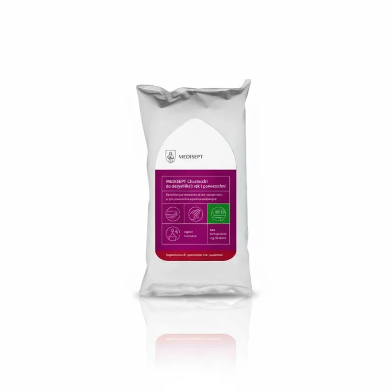 Alkoholowe chusteczki przeznaczone do dezynfekcji zarówno rąk, jak i małych powierzchni odpornych na działanie alkoholu.