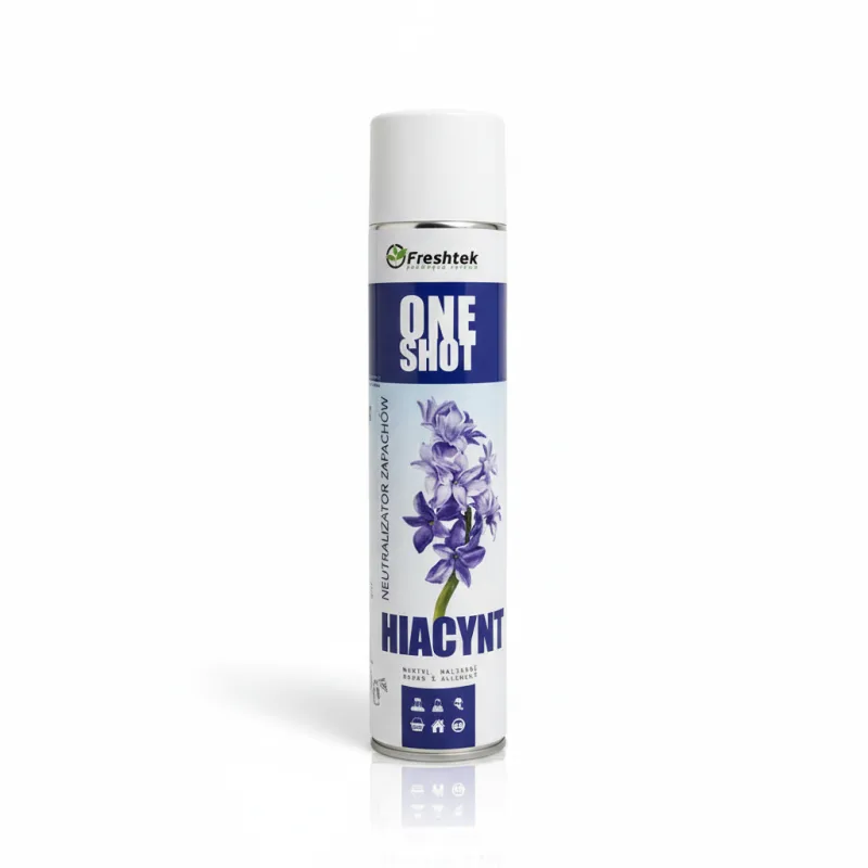 “One Shot” Hiacynt marki Freshtek, to profesjonalny neutralizator zapachów.