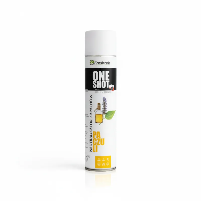 „One Shot” Paczuli marki Freshtek, o zapachu paczuli, to środek o podwójnym działaniu – odświeżacza powietrza i neutralizatora nieprzyjemnych zapachów.