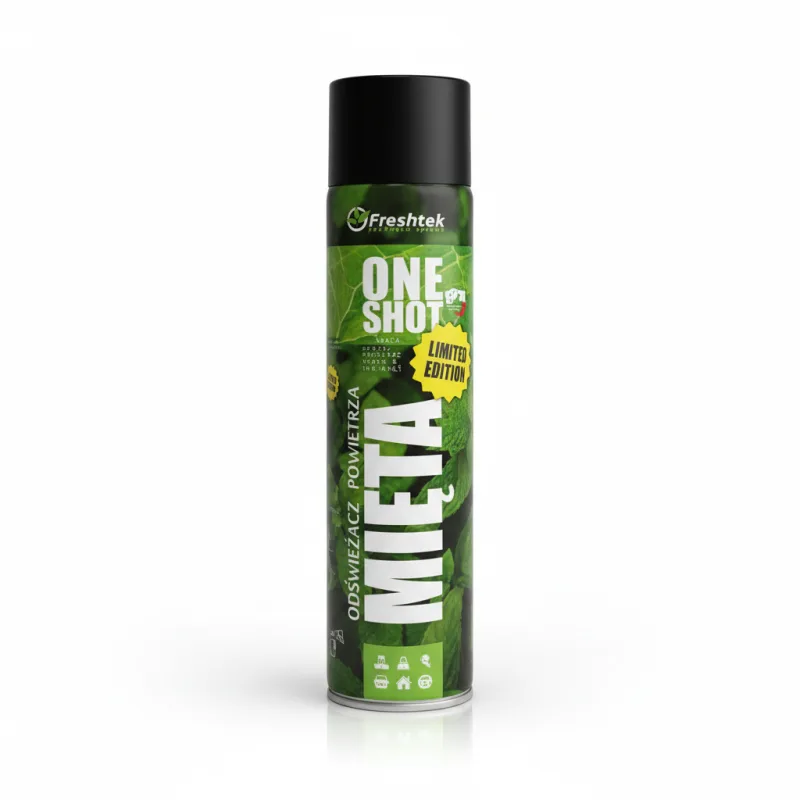 „One Shot” Mięta marki Freshtek, to profesjonalny odświeżacz powietrza o zapachu miętowej gumy do żucia.